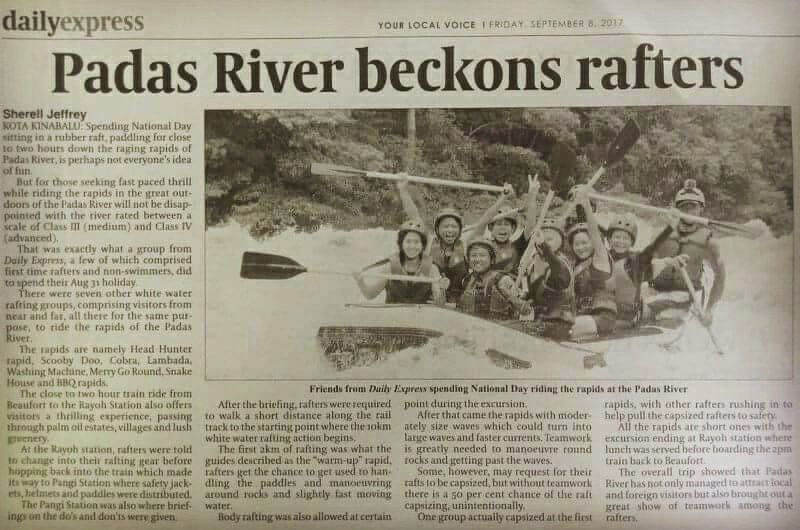 We were featured in the Daily Express for the Malaysian National Day issue! This was such an honor and pleasure. We had the team from Daily Express ride the rapids on the Padas River (Level III-IV) along with us on the 31st August. They all had a blast and as we had fun, safety was also number one in our priority as hosts. Xtreme Paddlers, your white water rafting specialist!